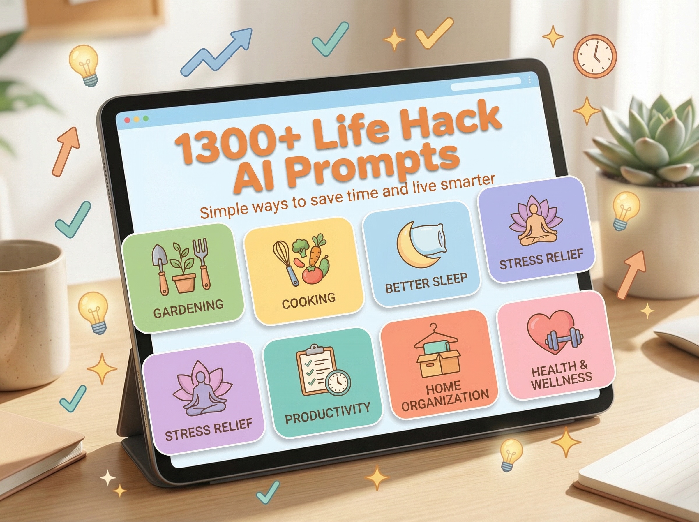 1,300+ AI prompts to improve daily life—from gardening and cooking to sleep, stress, and productivity hacks. Simple ways to save time and live smarter.